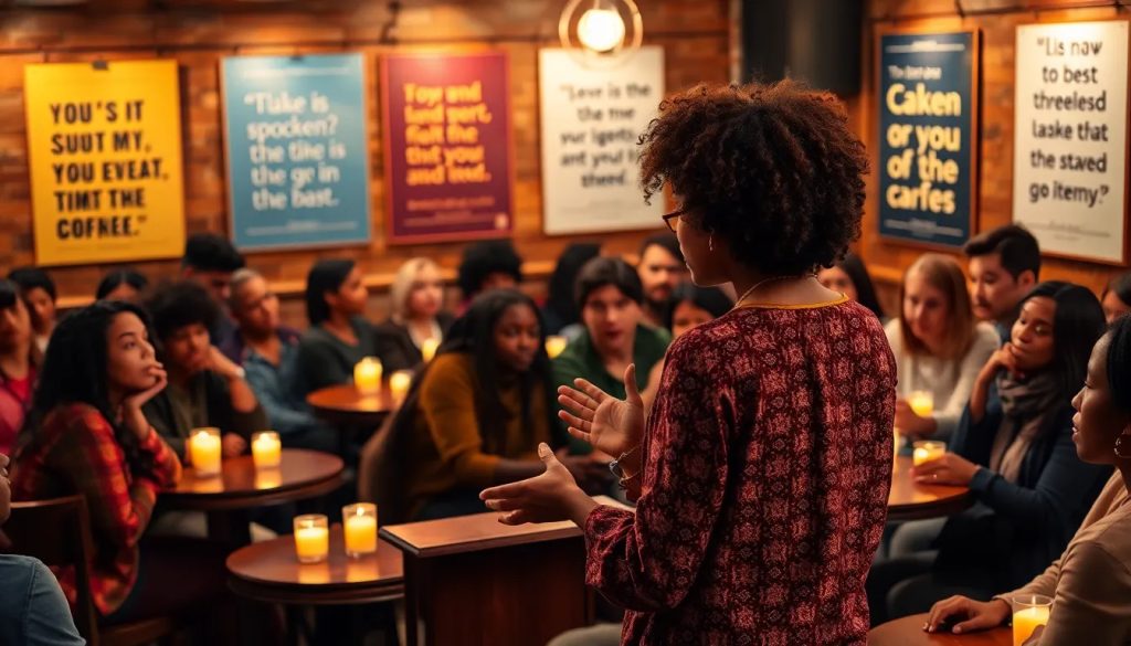 - Live performances and open mic nights, where the energy of the audience can amplify the impact of the words.