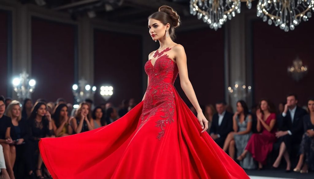 - Signature structured gowns that showcase intricate craftsmanship.